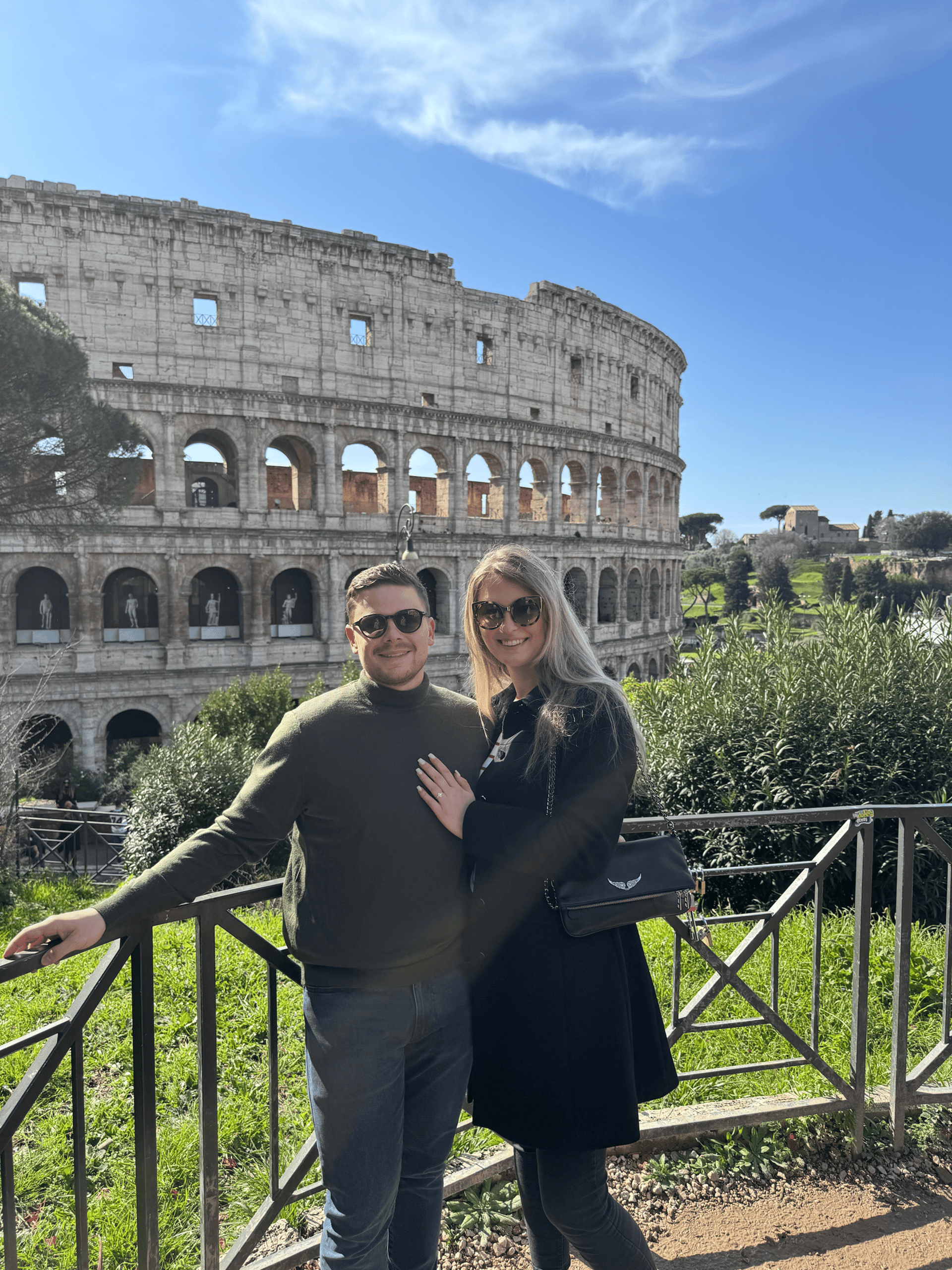 La demande, très attendue, a eu lieu lors d’un séjour à Rome. Dans le décor intemporel de la Ville Éternelle, ce moment restera gravé comme l’un des plus précieux de notre histoire dont une petite photo souvenir se trouve juste au-dessus.